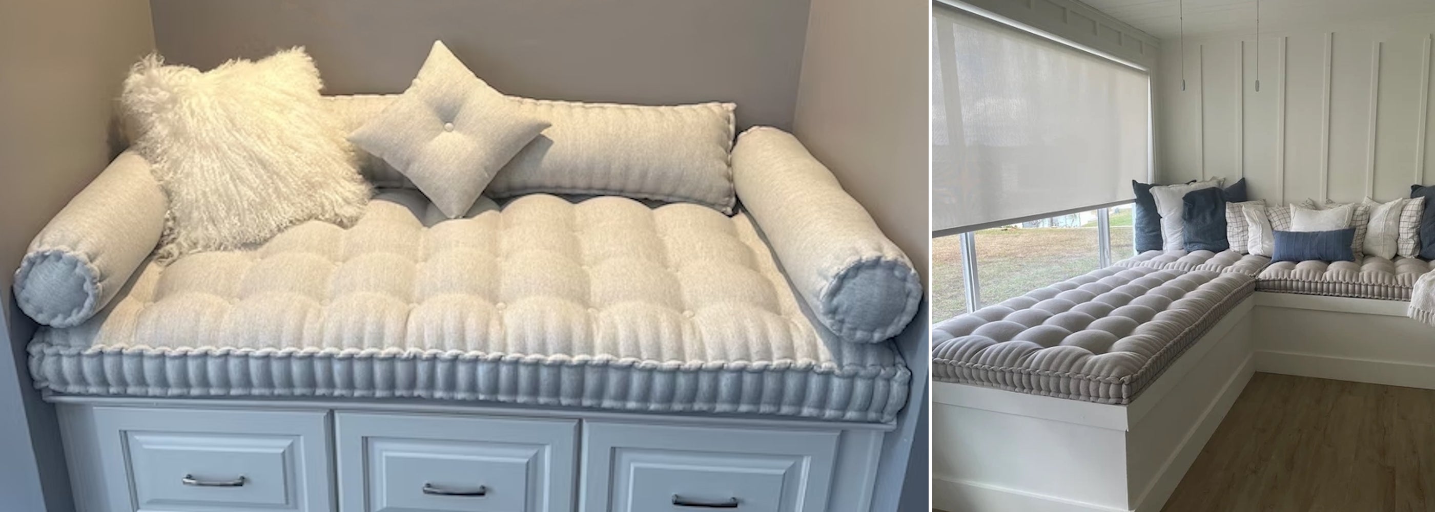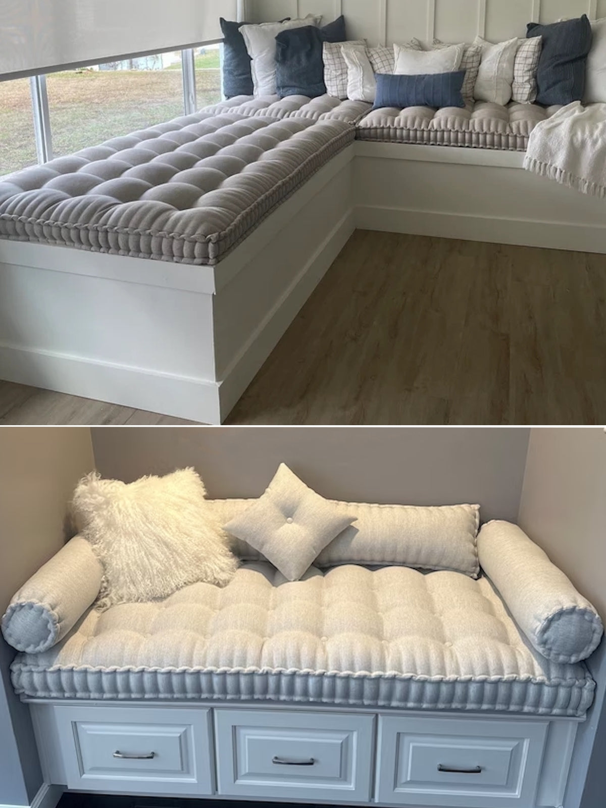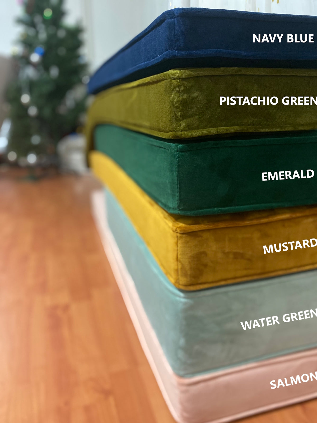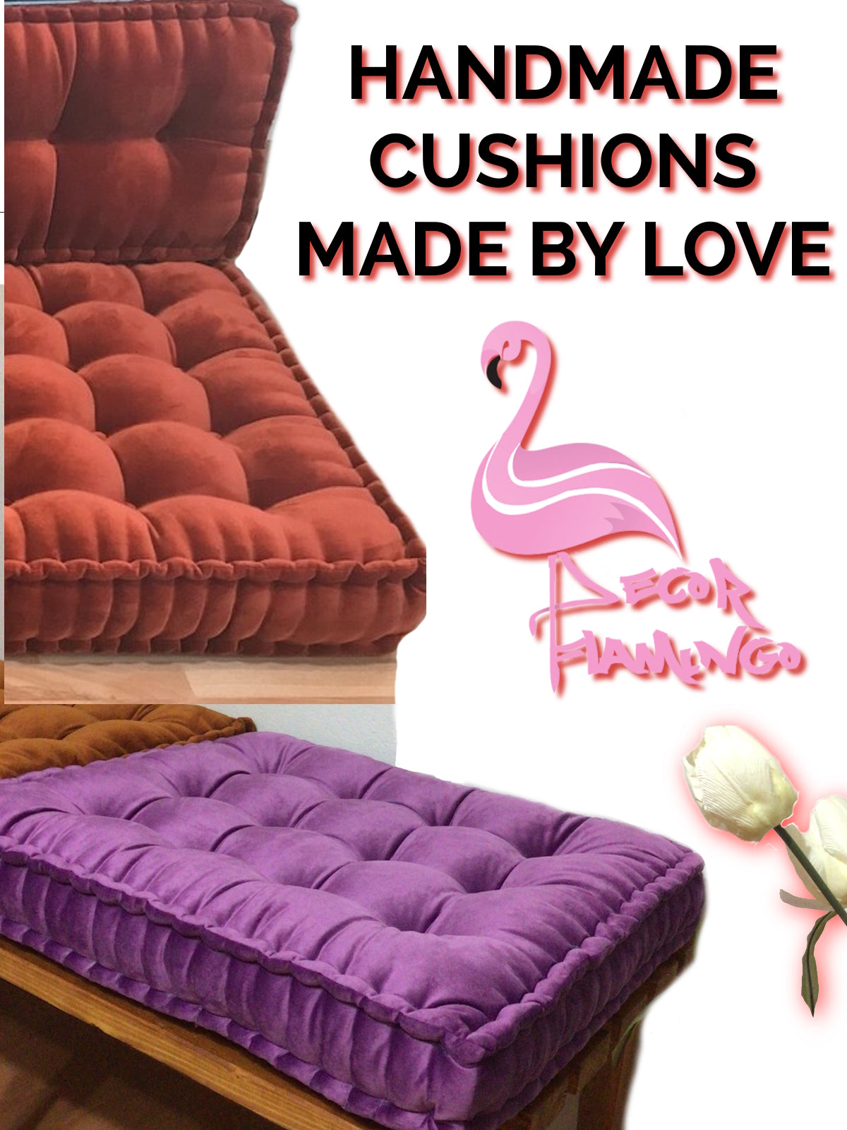 Tufted cushions feature decorative buttons or stitches that create a tufted appearance, adding texture and visual interest. Flat cushions, on the other hand, have a smooth surface without any embellishments, providing a sleek and modern look. Inner material for tufted ones are antiallergic silicon balls, high density and for flat ones are high density foams. Tufted cushions do not have removable covers because of their special shape, Flat ones have removable covers with zippers.